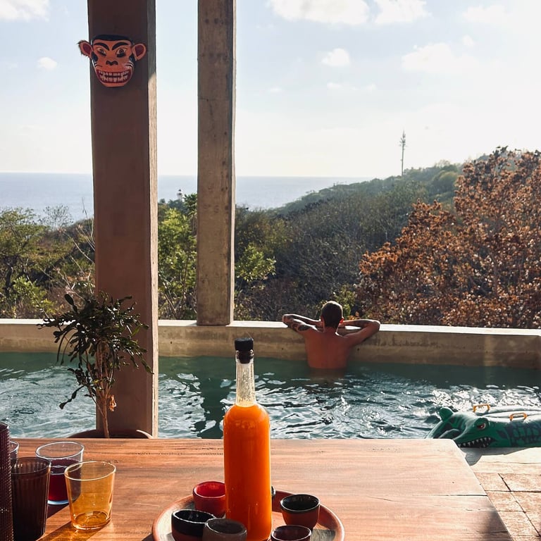Our elegant 7 king-size bedrooms will be shared between all retreat participants and facilitators on rotation throughout our time together. This beautiful home is perched on a cliff above the Pacific Ocean, less than a 10-minute walk to a public beach in the village of Puerto Angel. You are encouraged to extend your journey to enjoy nearby Zipolite Beach, Mexico's naked gay playground, with lots of lodging options.