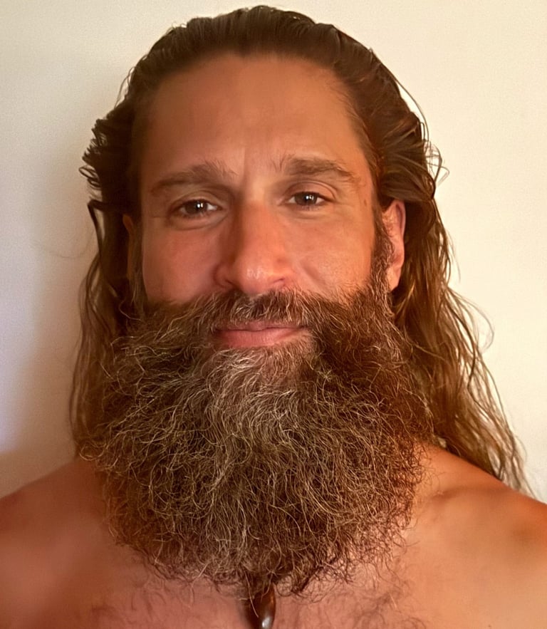 David Salih brings three powerful archetypes into his work: nurturing daddy, cosmic beast, and tantric yogi. The first, the ability for deep listening and skillfully holding a space of unconditional love. The second accesses and embodies the fierce, visceral, erotic manimal. The third summons the integration of a fully embodied ecstatic and spiritual life.